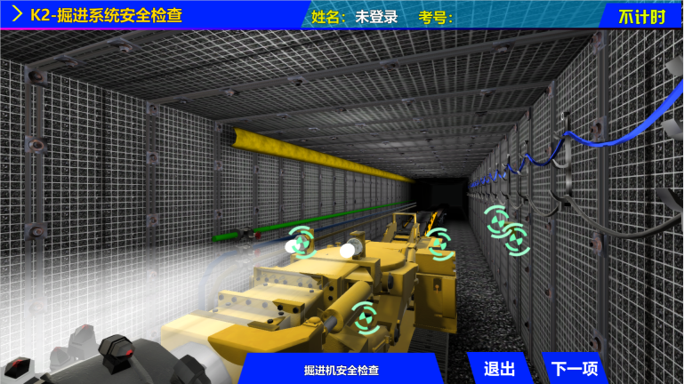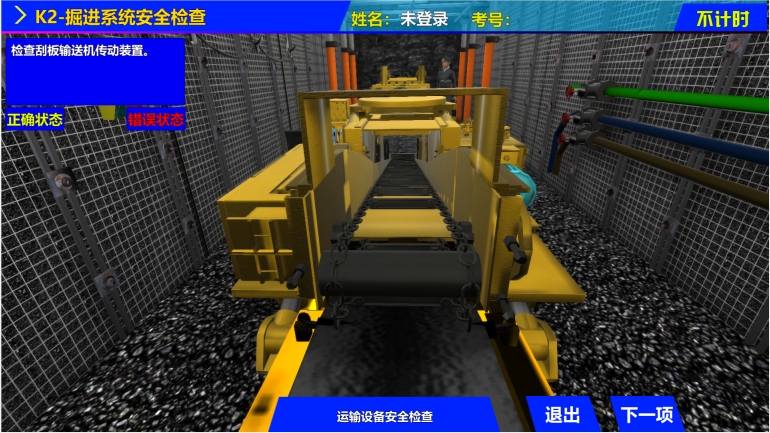 該系統(tǒng)采用55英寸高清液晶觸摸顯示一體機(jī),在保證系統(tǒng)運(yùn)行穩(wěn)定基礎(chǔ)上,充分發(fā)揮本系統(tǒng)的高質(zhì)量三維場景畫面,提供更高質(zhì)量的交互操作畫面。以觸摸代替鼠標(biāo)的形式,脫離電腦操作的限制,增加人機(jī)交互的真實(shí)感。系統(tǒng)本身滿足安全檢查操作作業(yè)基礎(chǔ)規(guī)范要求,可進(jìn)行采煤系統(tǒng)、掘進(jìn)系統(tǒng)、提升運(yùn)輸系統(tǒng)、井下電氣系統(tǒng),“一通三防”系統(tǒng)、探放水系統(tǒng)的模擬操作,通過檢查判斷,完成標(biāo)準(zhǔn)要求的所有考核項(xiàng)目。