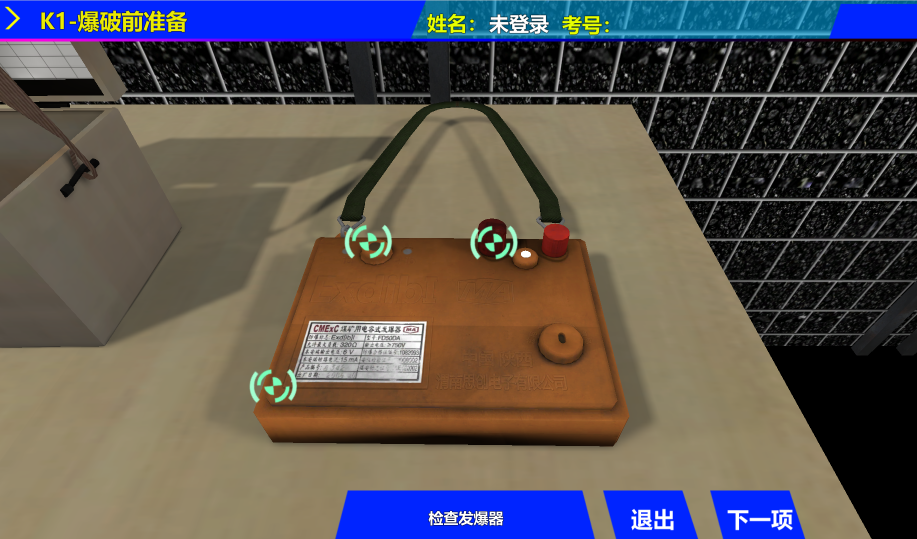 該系統(tǒng)由55英寸考核裝置、爆破模擬工作面和實(shí)操模擬裝置組成。完整的實(shí)現(xiàn)整個(gè)爆破作業(yè)標(biāo)準(zhǔn)的檢查和操作工作流程,讓學(xué)員真實(shí)的學(xué)到井下爆破的各種行為規(guī)范和技術(shù)技能,以實(shí)現(xiàn)一到實(shí)際工作能盡快上手工作。同時(shí)將需要考核的內(nèi)容通過傳感器與考核裝置中的數(shù)據(jù)庫相連接,達(dá)到實(shí)操與虛擬相結(jié)合,并將考核成績(jī)上傳考核系統(tǒng)。